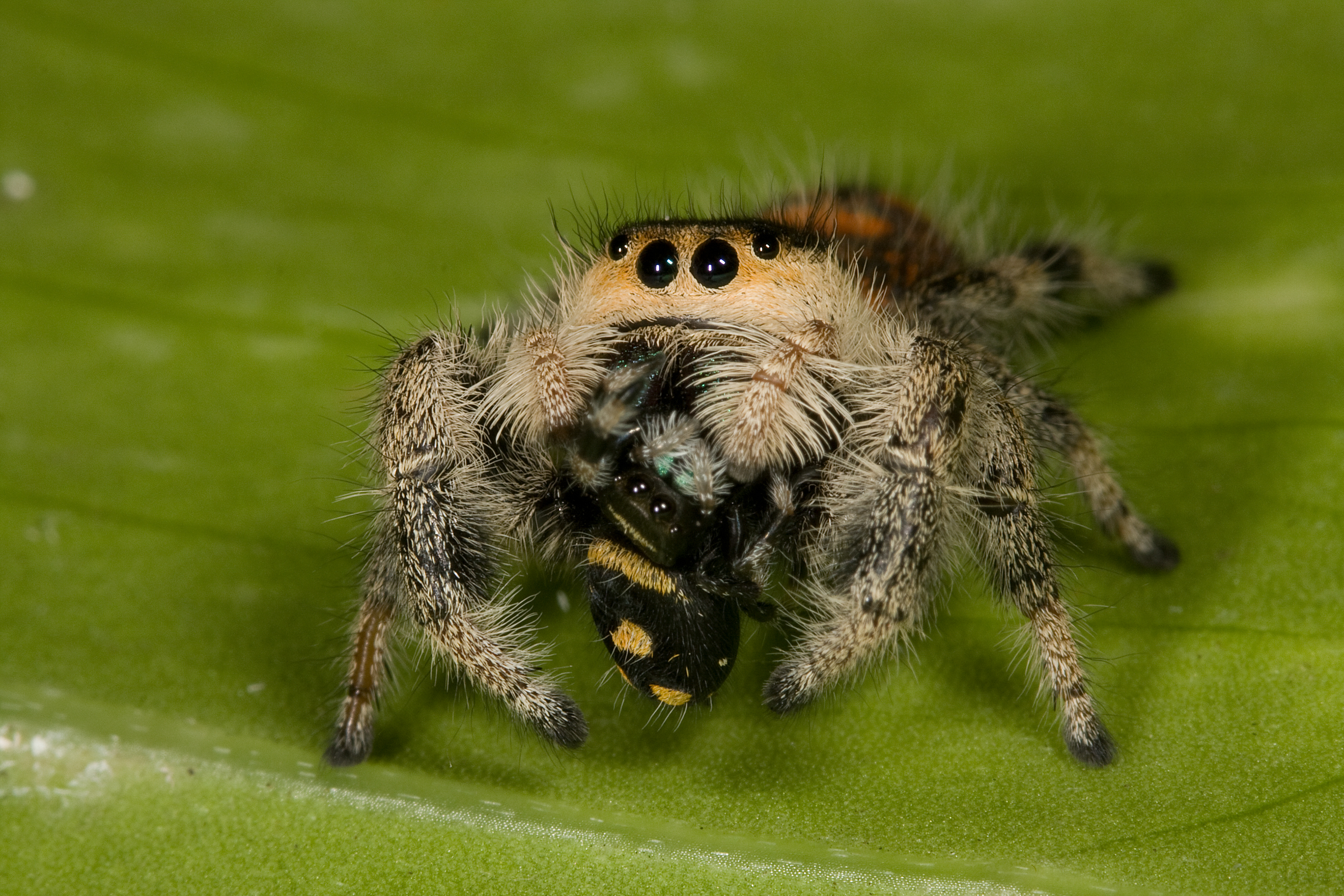 Kiss of death! A female regal spider eating a male.